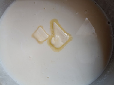 Добавляем к рису сливочное масло, сахар и молоко. После закипания варим рис еще 5 минут и снимаем кастрюлю с огня. Оставляем рис под крышкой на 10 минут.