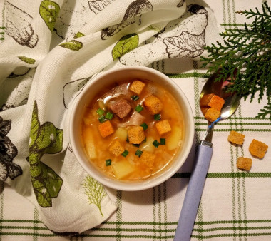 И мои домашние не поймут суп без картошки. Я себе, бывает, отдельно готовлю легкие супчики.