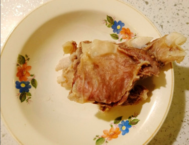 Нарезанное мясо положите в кастрюлю, залейте водой и поставьте на огонь. Содержимое кастрюли доведите до кипения, после чего уменьшите огонь, накройте кастрюлю крышкой и продолжайте варить мясо в течение 1,5 часов. С помощью шумовки периодически снимайте пенку с поверхности бульона, чтобы он не был мутным.