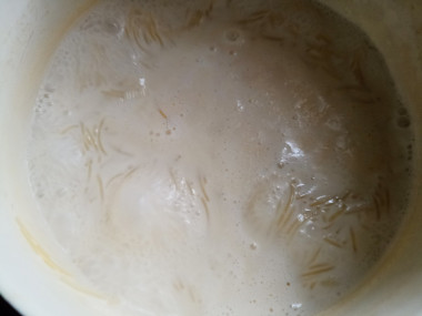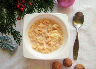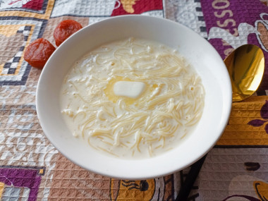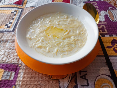 Захотелось приготовить молочный суп с макаронами и молоком. Так как я выбрала тонкую вермишель, процесс приготовления значительно упрощается. В закипевшее молоко добавила соль, сахар по вкусу, засыпала вермишель, положила кусочек сливочного масла и буквально через 5-7 минут был готов нежный, вкусный молочный суп. Я немного уменьшила количество вермишели, но всё равно суп получился достаточно густым и очень сытным. Спасибо за рецепт, Мария!