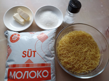 Как сделать молочный суп с макаронами на молоке? Очень легко и быстро! Для начала подготовьте необходимые ингредиенты по списку. Молоко можете брать любой жирности. Макароны - любые, но не длинные. Подойдет короткая лапша (длиной ок. 5-6 см), ракушки, спиральки, рожки, перышки и т. д. У меня мини ракушки, которые нужно варить 7 минут. Количество сахара и соли регулируйте по своему вкусу.