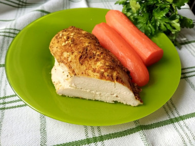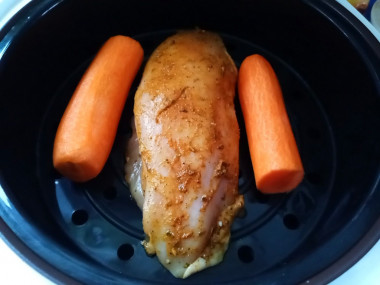 Случайно увидела на сайте рецепт куриные грудки на пару в мультиварке. Это было очень кстати. Мне нужно было отварить куриную грудку и морковь для салата. Мясо на пару я еще никогда не готовила. Оказалось, что это просто отличный вариант, который занимает мало времени, а активных действий минимум. Еще одно преимущество - грудка не вываривается, остаётся плотной, вкусной и сочной. Перед тем как готовить, грудку замариновала в специях для курицы на 15 минут. Морковку почистила, разрезала пополам и тоже положила к грудке. Готовила на пару 40 минут. После этого все было готово. А куриная грудка получилась очень ароматной. После остывания легко её нарезала ровными кубиками и соломкой. Теперь буду часто пользоваться этим рецептом.