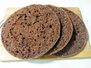 Промазать кремом и соединить коржа. Тортик отправить пропитываться на 4-6 часов.
