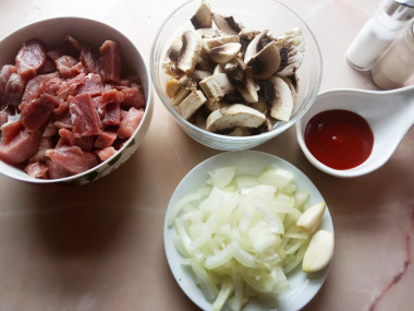 Свинина с грибами - замечательное сочетание, а приготовленное в сметанном соусе в любимой мультиварке-это шедевр. Я вообще люблю готовить в мультиварке, т.к. блюдо в ней не вываривается, а томится, т.е. все полезные свойства продуктов сохраняются. В данный рецепт я внесла небольшие коррективы: мясо перед обжаркой посолила, поперчила, добавила паприку копченую и обваляла в кукурузным крахмале, чтобы не вытекал сок, томатную пасту и чеснок добавлять не стала, подумала, что они не будут сочетаться с грибами, а добавила морковь. В итоге мясо получилось сочным, мягким и очень вкусным. В следующий раз приготовлю все-такие с томатной пастой и чесноком. Спасибо за рецепт!