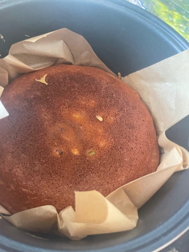 Учтите, что если покрытие вашей чаши было ранее испорчено (например, перегревом) или оно некачественное, пирог может прилипнуть. Избежать этого можно, застелив чашу пергаментом (нужно вырезать круг большего, чем чаша, диаметра, с отступом примерно 7 см). Пергамент не даст тесту прилипнуть к покрытию, но такой пирог вряд ли получится перевернуть. Поэтому, если вы выберете пергамент, советую просто запекать пирог на 5 минут дольше (или до готовности), не переворачивая. Румяной корочки сверху не получится, но и пирог не прилипнет.