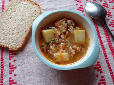 Суп получился очень аппетитный, с насыщенным вкусом, яркий и красивый. Перловка отлично приготовилась и стала мягкой. Картошка не раварилась. Очень понравилось, что в приготовлении не требуется много активного участия.