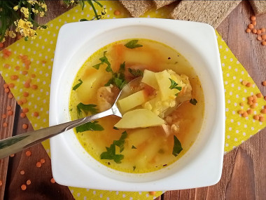 Я такой суп с чечевицей и курицей ещё никогда и ничего не готовила.