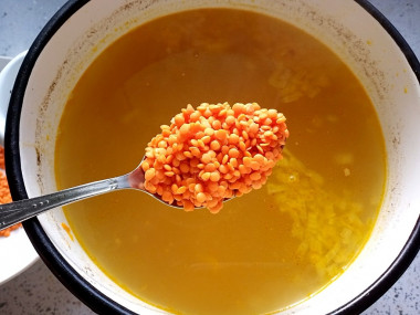 Чечевицу использовала красную. Она более нежная и отлично разваривается (а значит менее заметна в супе)).