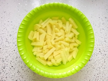 В кастрюлю отправьте картофель. Огонь увеличьте, чтобы довести бульон до повторного кипения.