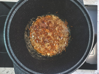 Включите режим "Плов" на 50 минут. Режим и точное время будут зависеть от особенностей работы вашей мультиварки. Подробнее об этом читайте после описания рецепта.