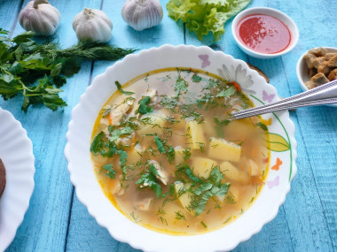 Готовый гречневый суп с курицей и картошкой разлейте в подготовленные тарелки и подавайте к столу. Приятного аппетита!