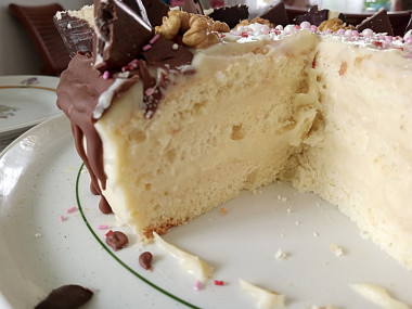 Торт очень вкусный, невероятно нежный и сочный. При этом он прекрасно режется на кусочки, не разваливается, коржи хорошо схватились с кремом. Дети, да и взрослые съели все до конца) Очень удачный торт, рекомендую всем к приготовлению. Точно не пожалеете! Автору большое спасибо!