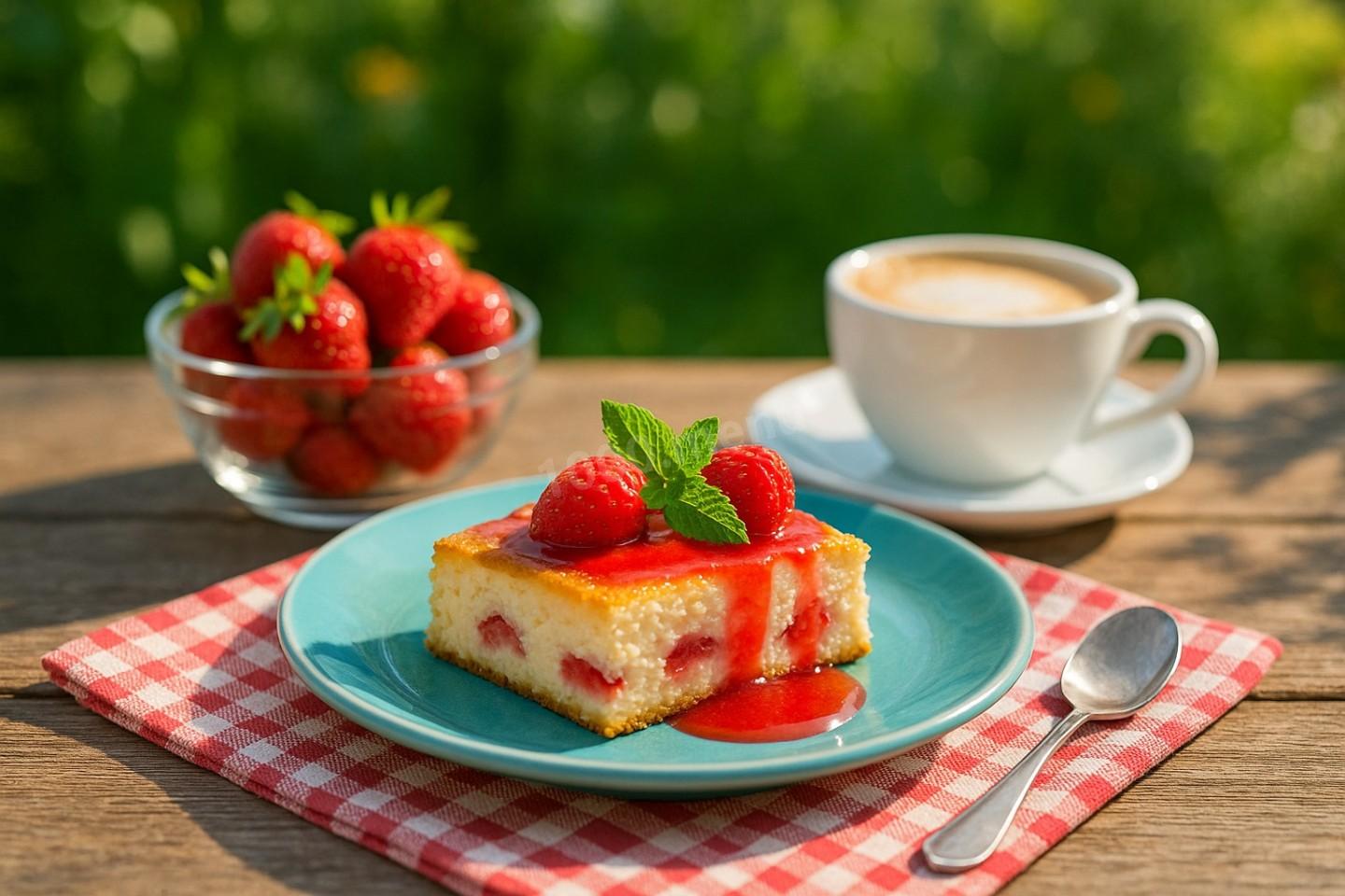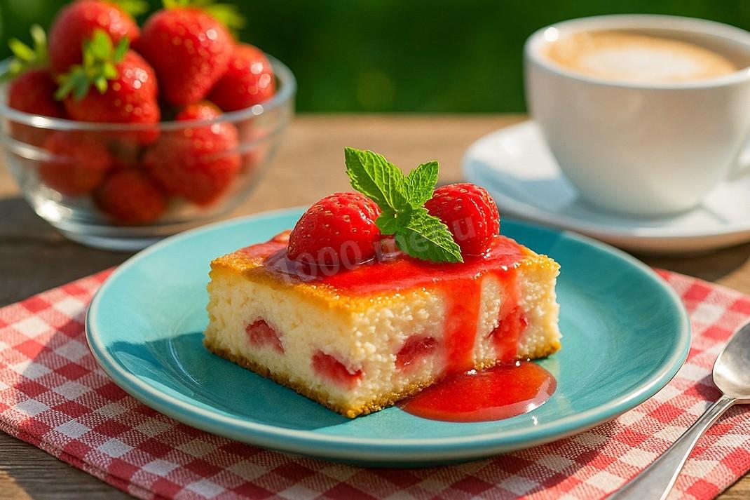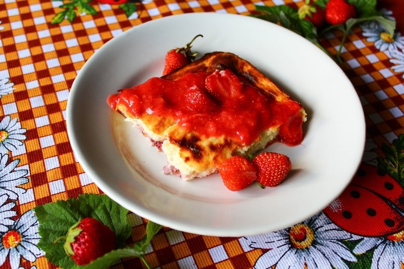 Творожная запеканка с клубникой готова. Приятного аппетита!