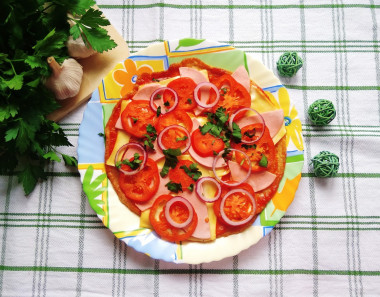 Как хорошо, что на сайте я нашла этот рецепт, просто палочка-выручалочка для полноценного сытного завтрака. Готовила уже несколько раз. Тут главное основа, а уж начинку можно брать разнообразную. Конкретно в сегодняшнюю пиццу я добавила маринованный лук. Но мне нравится именно в варианте автора рецепта. Всё просто и быстро. Иногда я заготавливаю всё с вечера, а на утро за считанные минуты готовится завтрак. Тесто получается тоненькое, там муки всего полстакана, начинка сытная, сочная, пикантная. Кстати, лепешку я отдельно не пропекала и не переворачивала, осторожно силиконовой кисточкой нанесла кетчуп, начинку аккуратно распределила по сырому тесту. Все прекрасно пропеклось и время сэкономила.