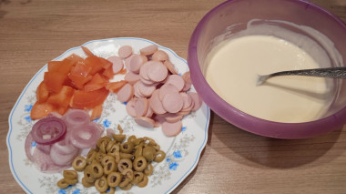 у меня в принципе рецепт такой же, но я еще добавляю в начинку маслины и заливаю все хорошенько майонезом и кетчупом