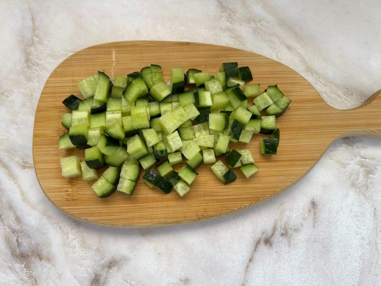 Огурцы помойте и порежьте кубиками.