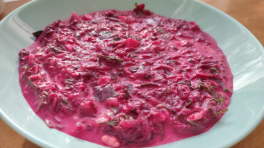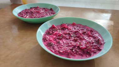 Думаю летом пойдет на ура такой супчик, хорошая альтернатива окрошке, ато окрошка поднадоедает за лето. У меня бабушка в Белорусии очень часто готовила на подобие этого супа, вот только без кефира да еще и ботву от свеклы добавляла. Да, да именно ботву свекли свежей,мыла тщательно и крошила мелко, но его она готовила только когда выростал свежий урожай.
