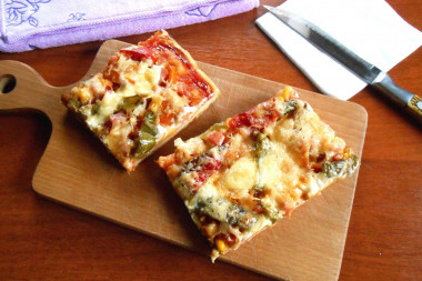 Получилась очень ароматная пицца за счёт чеснока, никогда я не клала чеснок в пиццу. Спасибо вам за идею!