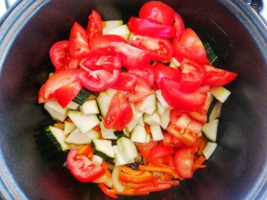 Отправьте помидоры и кабачки в чашу мультиварки.