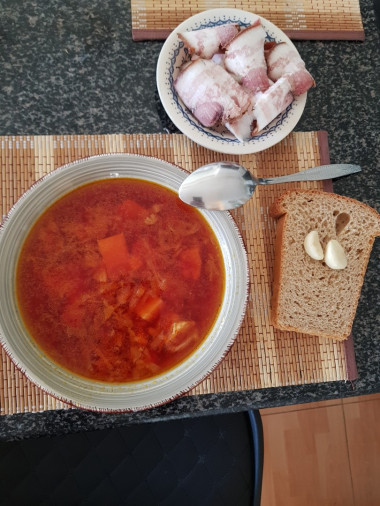 Особо никогда не любила борщ у кого бы ни пробовала, он был какой-то бледно-розовый иногда чуть красный на вид не очень аппетитный. А муж любит борщ! Вот и пришлось немножко потрудиться и сварить чтоб суп был насыщенного красного цвета с наваристым и сытным бульоном, который приятно будет подать на стол не только своим домочадцам, но и если придут гости. С удовольствием кушает этот борщ и мой сынуля, которому всего лишь 2 года. Спасибо за рабочий рецепт.