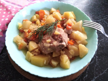 Тушеные свиные ребрышки в мультиварке с картошкой