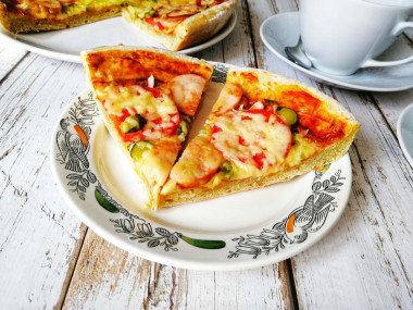 Я больше люблю пиццу на дрожжевом тесте, а такой рецепт спасает, когда пиццу нужно сделать быстро.