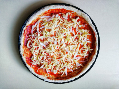 Время приготовления зависит от характеристик вашей духовки, поэтому проверяйте готовность по внешнему виду пиццы. В готовой пицце тесто немного увеличится в объеме и слегка зарумянится. При аккуратном нажатии ладонью, тесто не должно "гулять".