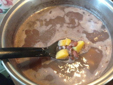 Промыть фасоль и добавить к мясу. Варить примерно час.