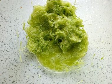 1.Отжим кабачков: если кабачки слишком сочные, откиньте натертые кабачки на дуршлаг или сито, возможно, используя чистое кухонное полотенце. Когда излишняя жидкость стечет - отожмите. Избыток влаги часто может привести к тому, что оладьи не держат форму.