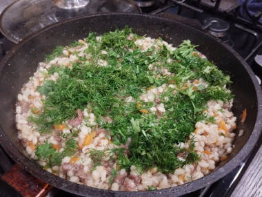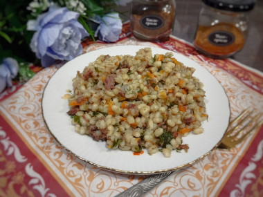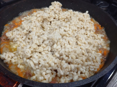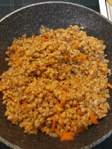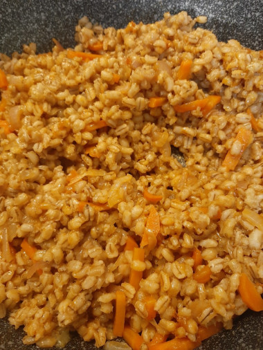 Рецепт Перловка с тушенкой прикольный...После ковида сижу на ПП, поэтому сделала без мяса))) Очень сытно и вкусненько не ожидала от перловки такого интиресного вкуса)))