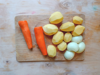 Шаг 2. Как подготовить картофель, лук, морковь, свёклу и чеснок?