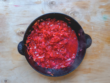 - Пассеруйте свеклу отдельно. Не смешивайте ее с другими овощами сразу.