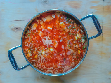 Шаг 11. Как собрать суп борщ с тушенкой?