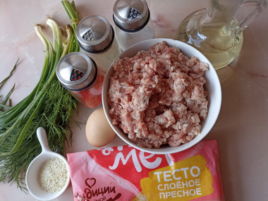 Необходимые продукты. Тесто надо разморозить в течение часа.