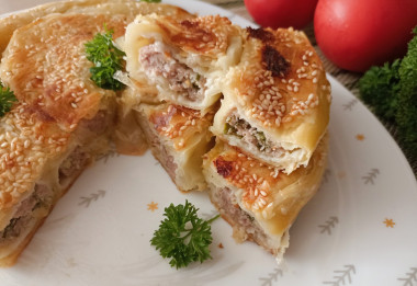 Заинтересовал рецепт пирога из слоёного теста в мультиварке. Я очень люблю готовить выпечку в мультиварке, но вот слоёное тесто выпекаю в ней впервые. Получилось очень просто и очень вкусно! Начинка сытная, сочная, ароматная, а тонко раскатанное тесто прекрасно пропеклось, сохранив слоистость. С удовольствием буду готовить такой пирог с фаршем ещё не раз, и с другими начинками планирую поэкспериментировать . Спасибо автору за рецепт и интересную идею!