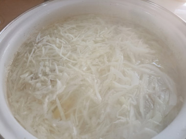 Морковь нарезаем соломкой.