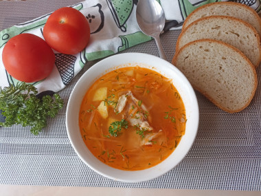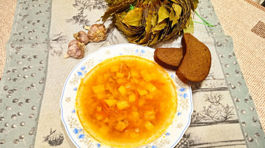 У меня был готовый бульон из куриного супового набора, на его основе решила приготовить куриный суп с капустой и картошкой. В зажарке заменила томатную пасту кетчупом, в остальном готовила по рецепту автора. Получился упрощённый вариант борща))), готовится он быстро и просто, получается очень вкусный, лёгкий супчик! Спасибо автору за рецепт!
