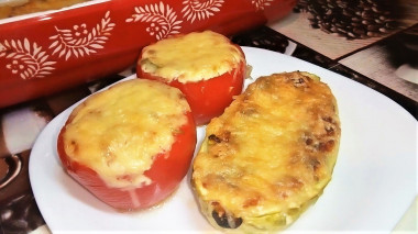 Мне так понравился рецепт Фаршированные помидоры с ветчиной и сыром, что я ещё и кабачки так же нафаршировала. Большое спасибо, это очень вкусно!
