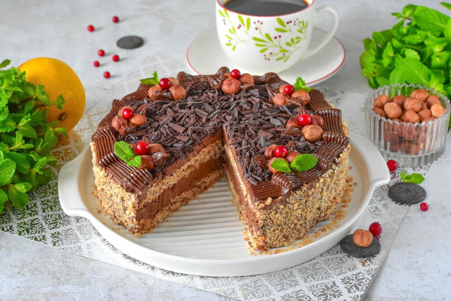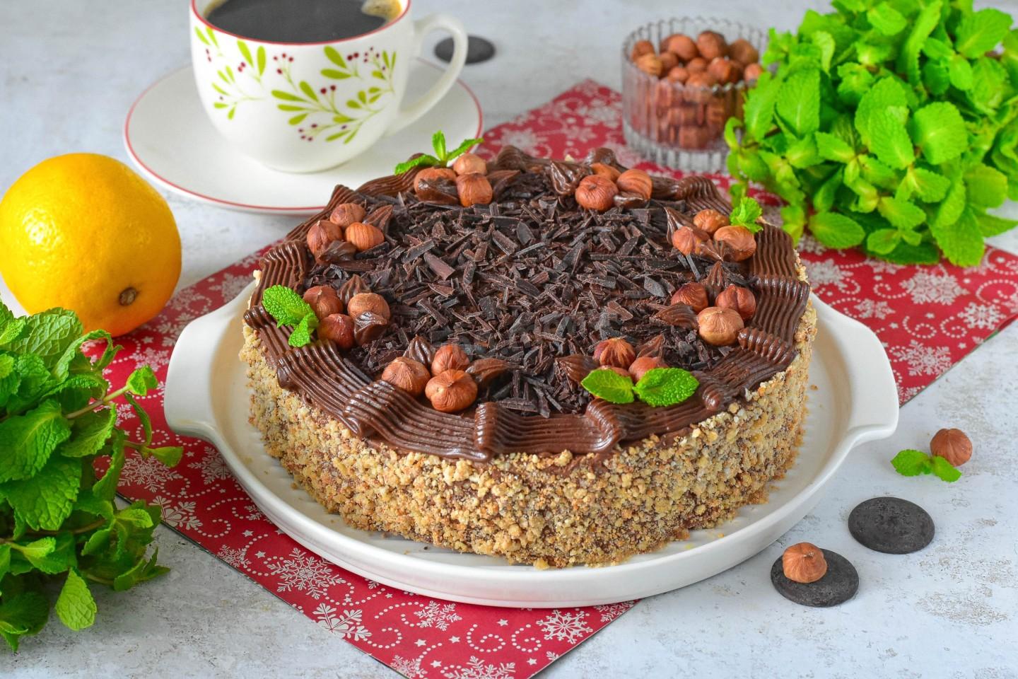Классический: Украсить дробленым фундуком, шоколадной стружкой и крошкой от коржей.
