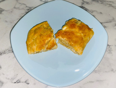 Из слоеного теста выпекала вот такие слоеные конвертики с адыгейским сыром. Очень просто.