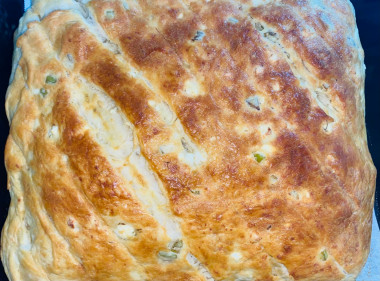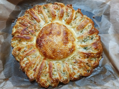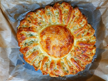 Вкусный пирог, люблю выпечку с сыром, а в этом пироге сыр дополняет зелень. Отличное сочетание.