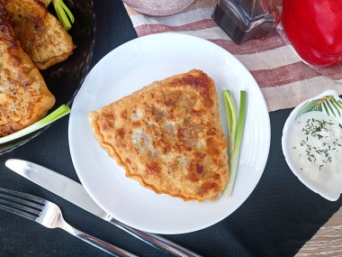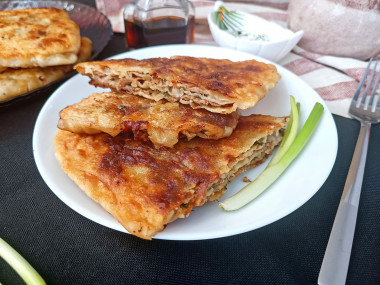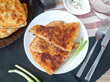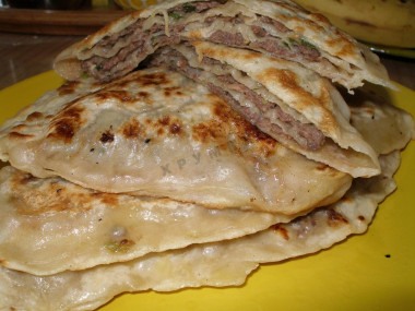 Замечательный рецепт!!! Немного похоже на чебуреки. Готовятся лепешки быстро: пока обжаривается-пропаривается одна, успеваешь сделать другую. Фарш сделала из говядины, боялась, что будет сыроват. Положенного времени хватило для его полной готовности. Тесто отличное, очень тонкое, нежное. IrenDV, СПАСИБО!!!