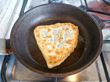 Обжаривала лепёшки с двух сторон до золотистой корочки, а затем на минимальном огне держала по 3 минуты с каждой стороны, чтобы фарш приготовился внутри.