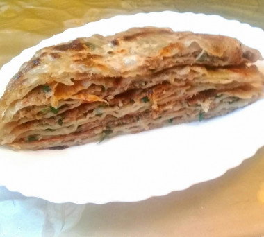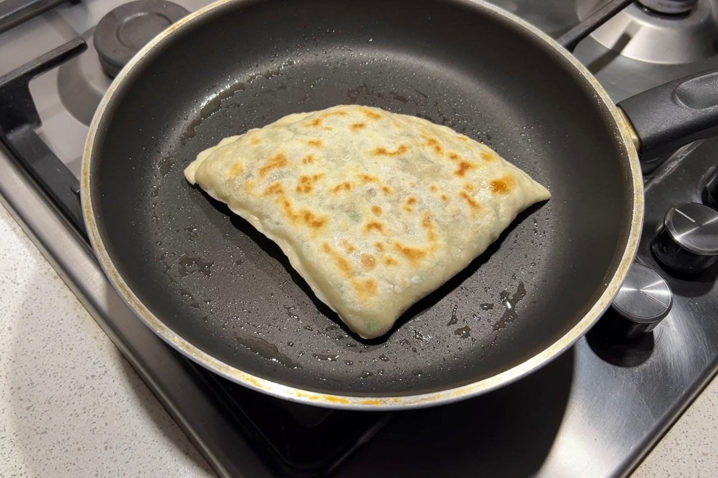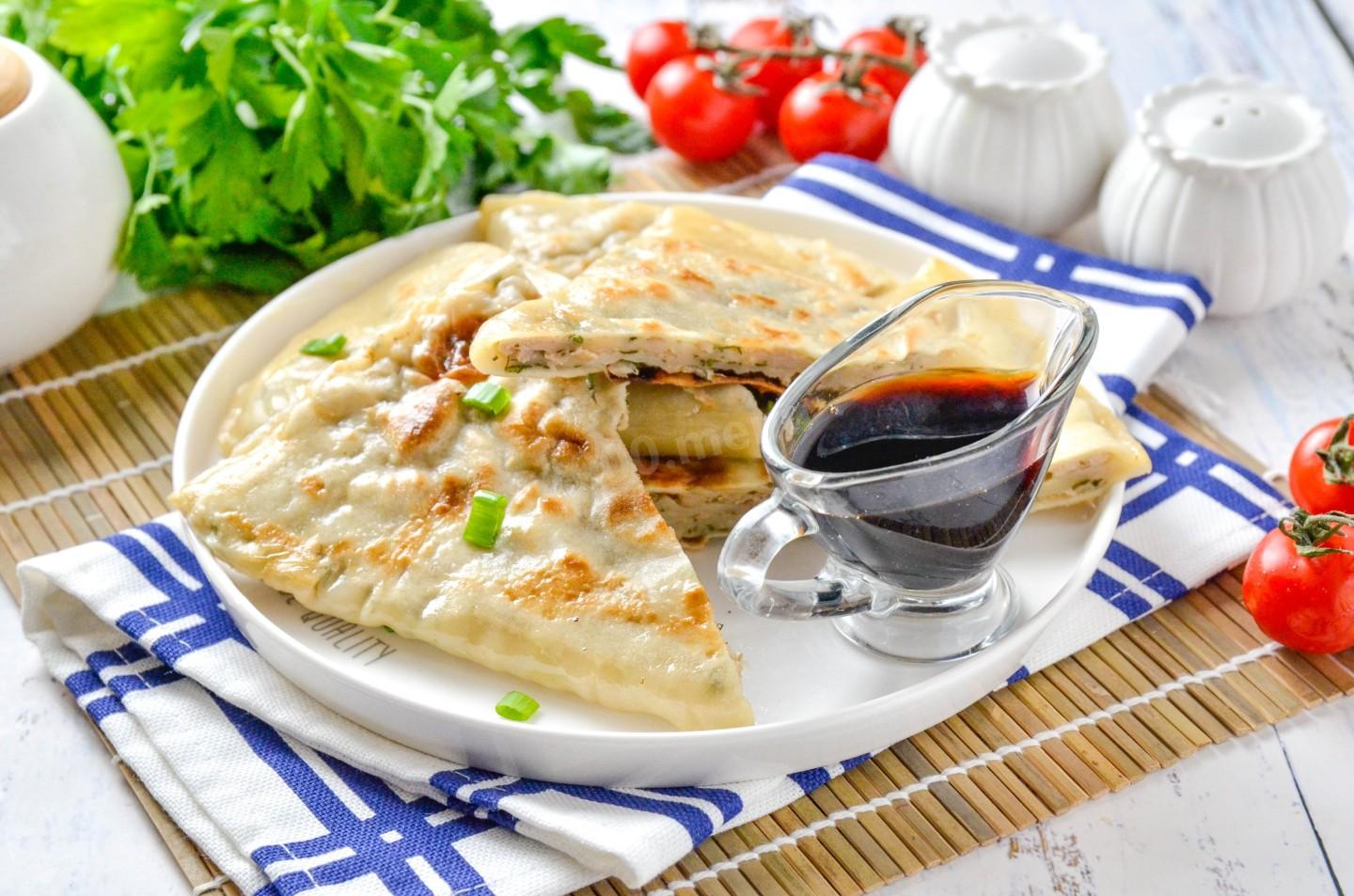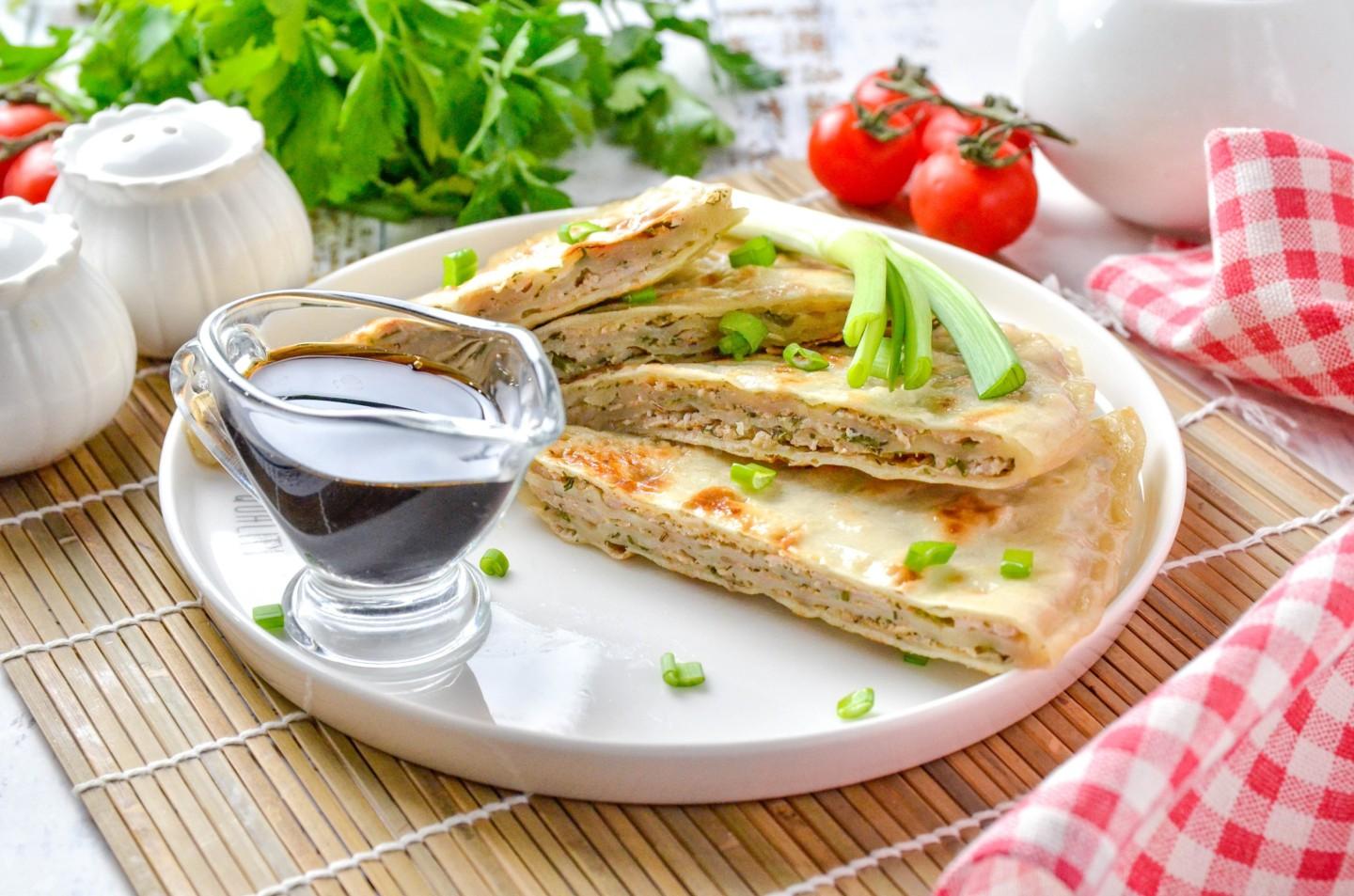 Лепёшки получились просто идеальными! Хрустящая золотистая корочка снаружи, нежные воздушные слои внутри. Начинка — сочная и ароматная: фарш приготовился равномерно, зелень и соевый соус чувствовались идеально, дополняя, но не перебивая основной вкус. Получилось настолько сытно, что этого количества хватит, чтобы накормить всю семью.