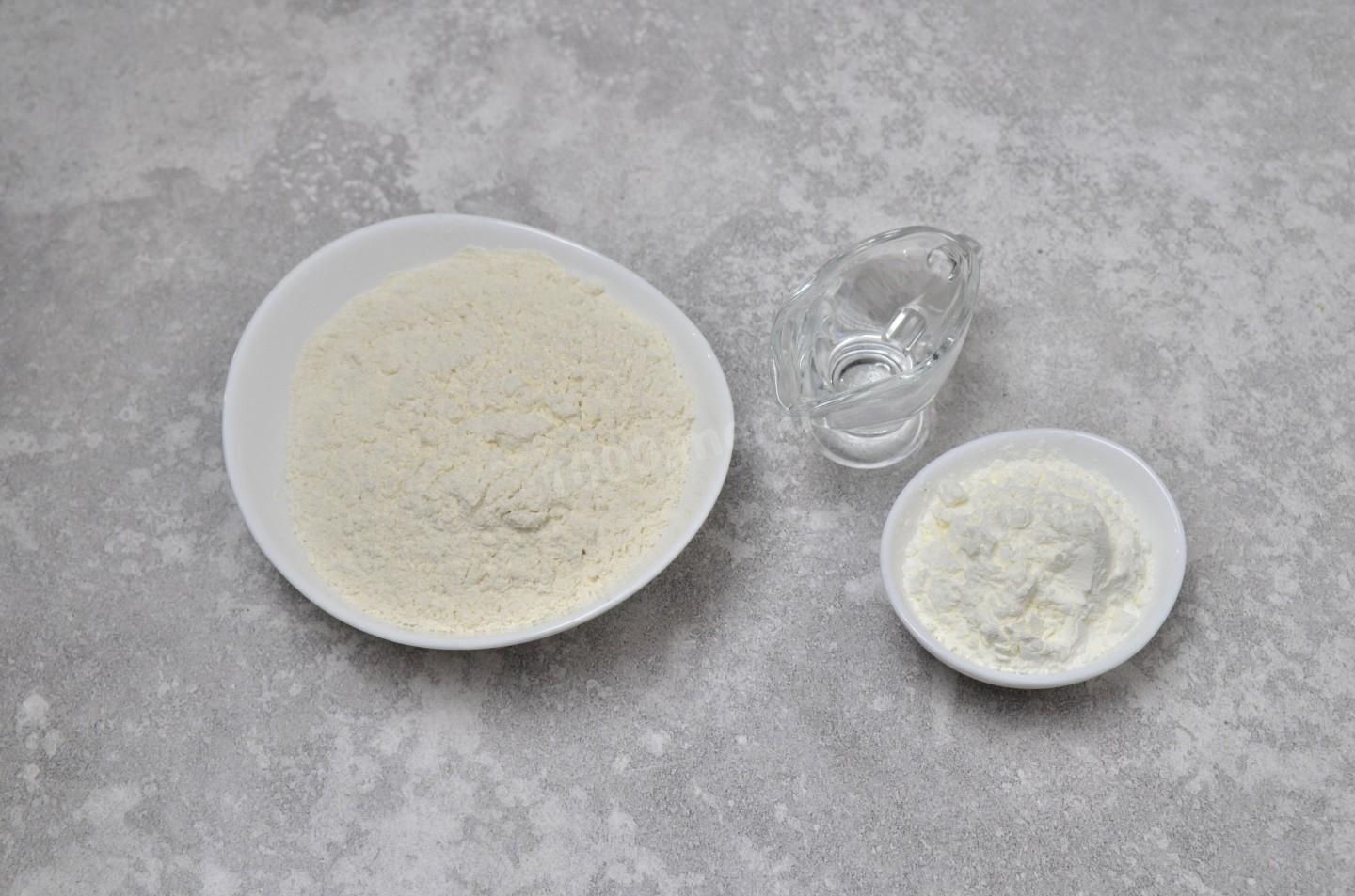 Как сделать слоеную китайскую лепешку с мясом и зеленым луком? Подготовьте продукты. Первым делом сделайте тесто. Крахмал возьмите картофельный. Воду комнатной температуры.