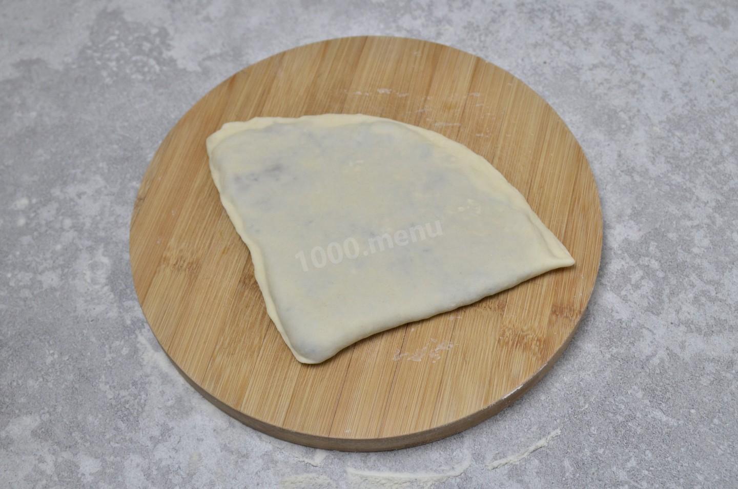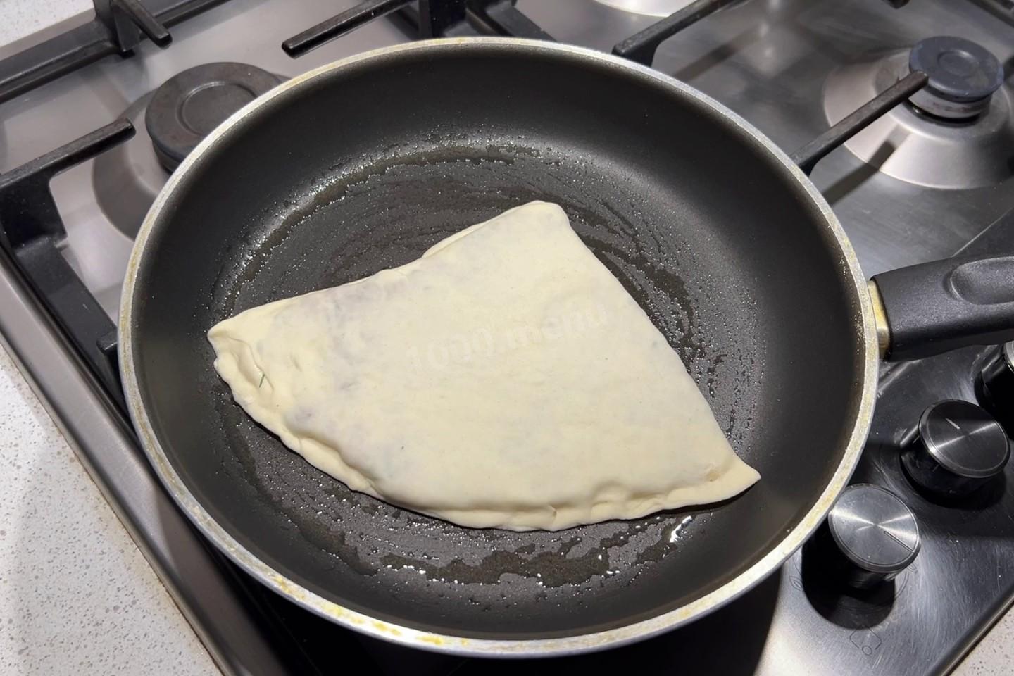 Накройте этим свободным куском теста противоположную часть. Затем сложите лепешку по кругу два раза.
