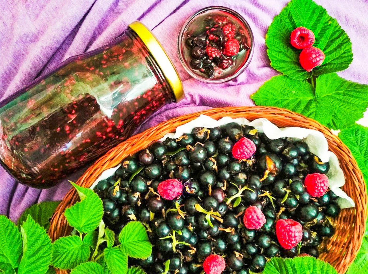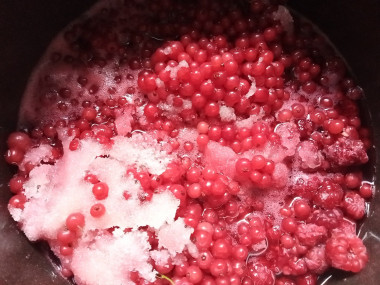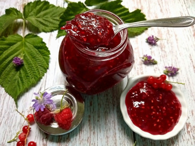 Вечером купили малину и надо было срочно что-то с ней сделать, т. к. ночью варить варенье совсем не хотелось. На сайте нашла интересный вариант варенья из малины и черной смородины. Смородина правда у меня красная и у меня была замороженная. Чтобы малина за ночь не пропала, засыпала ее сахаром и оставила в холодильнике. А утром соединила в кастрюле малину и красную смородину, пробила блендером и стала варить. Мне кажется не обязательно делать это по отдельности) После закипания варила примерно 10 минут на слабом огне. Не смотря на такую быструю варку, варенье получилось даже немного густым) Я думаю это благодаря смородине, в которой содержится много пектина. А еще смородина сбалансировала вкус заготовки, ведь малина очень сладкая. Вкусное варенье! Как-нибудь попробую сварить такое варенье и с черной смородиной, думаю это тоже вкусно.