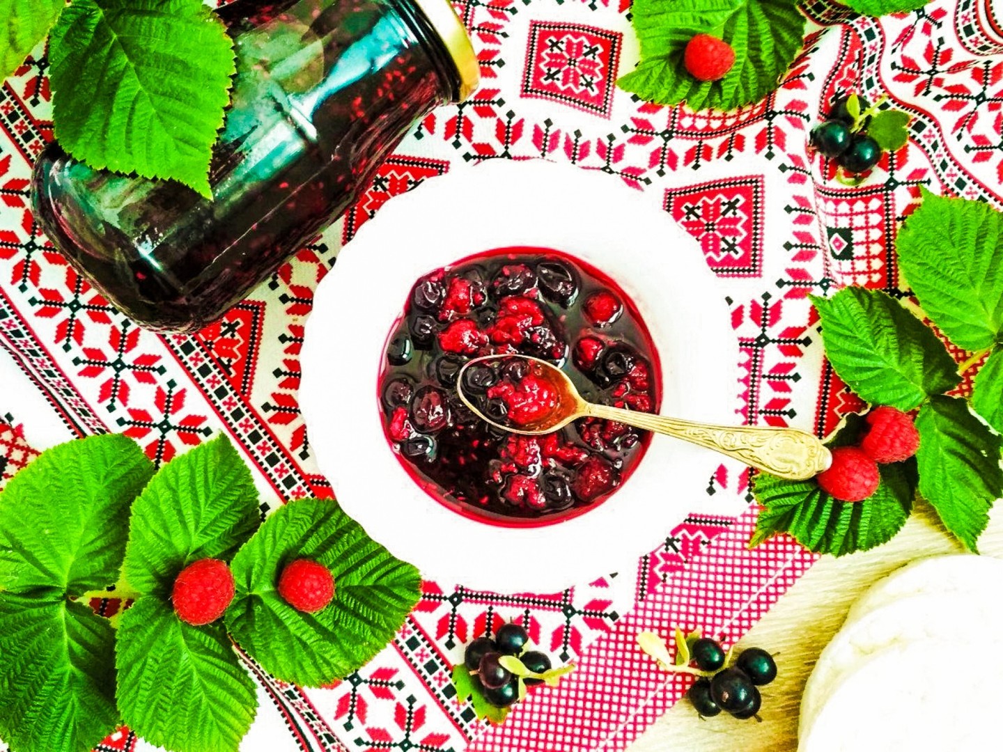 Варенье из малины и чёрной смородины получается очень вкусным, не густым и без приторной сладости. Готовое варенье отлично подойдет к несладкому чаю, особенно в зимний период, а также в качестве топпинга к блинам, панкейкам, оладьям и тостам или даже к мороженому.