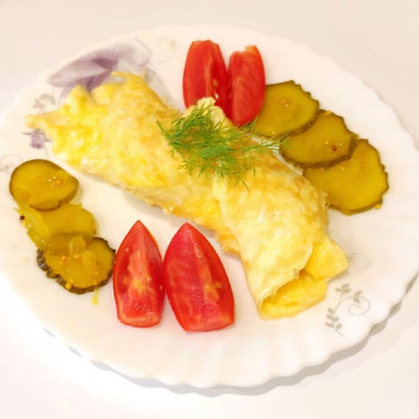 Это самый вкусный и простой в приготовлении омлет на свете!! Как только я узнала этот рецепт - готовлю теперь только так! Консистенция этого омлета получается более плотная, не водянистая, по сравнению с омлетом на молоке, и мне это очень нравится. Я пробовала такой омлет сворачивать рулетиком, предварительно посыпав тертым сыром - получается очень вкусно. Конечно же, вместо сыра можно завернуть любую начинку) Перемешивание с маслом яичной массы придает омлету сливочный вкус и гладкую структуру, он хорошо снимается со сковороды и эстетично выглядит на тарелке.