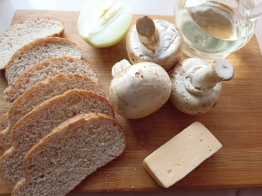 Как сделать горячие бутерброды с грибами и сыром в духовке? Подготовьте для этого необходимые ингредиенты. Для приготовления бутербродов можно использовать любой вид хлеба на ваш вкус. Он может быть как белым, так и темным. Грибы так же могут быть любыми. У меня свежие шампиньоны.